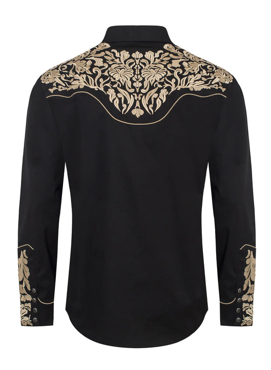 Men’s Western Cowboy Embroidery Shirt – Klassisk westernskjorte med rose motiv