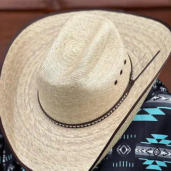 Natural Straw Western Cattleman Hat with Ribbon Hat Band - myk Stråhatt