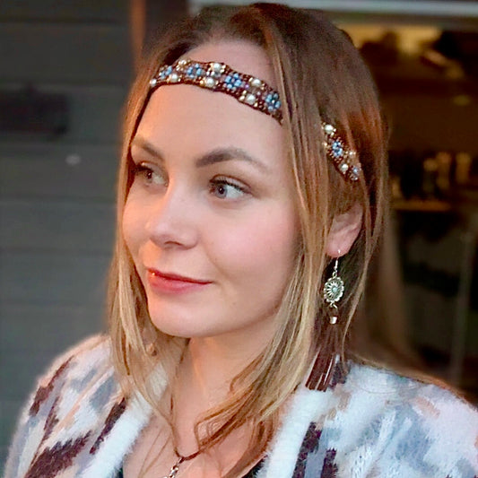 Blazin Roxx – Perlebrodert hodebånd i brun og turkis