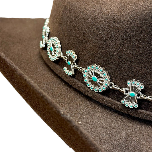 Hattebånd – Sølvconchos med turkise steiner