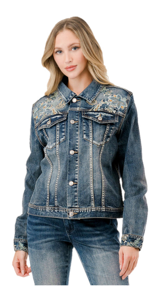 PÅ LAGER IGJEN - Grace in LA Floral Denim Jacket