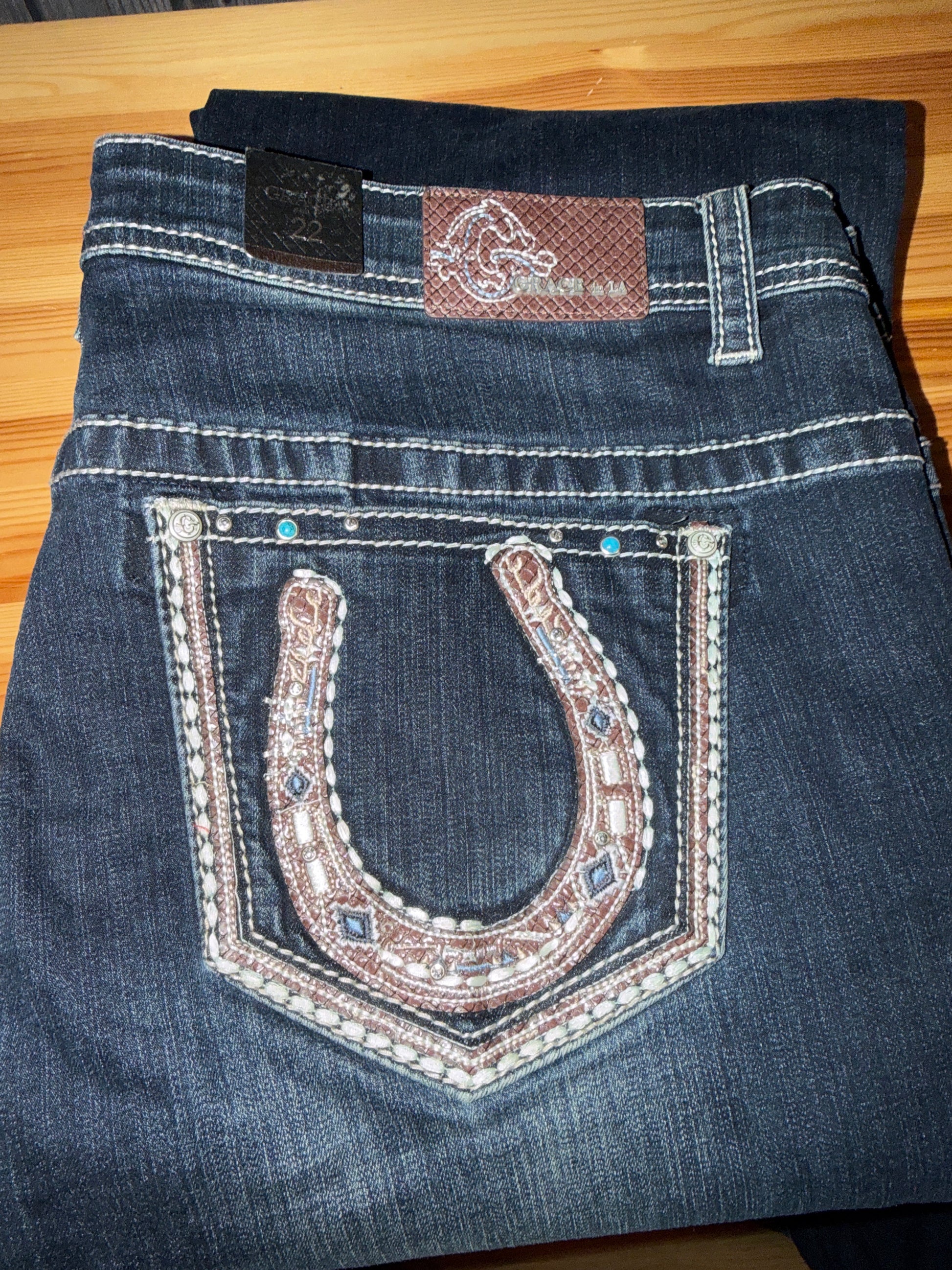 The Grace In La buksene har en stretchy denim designet for å passe hver en hver form. Denne har et hestesko design og broderte detaljer på lommene fremme.
