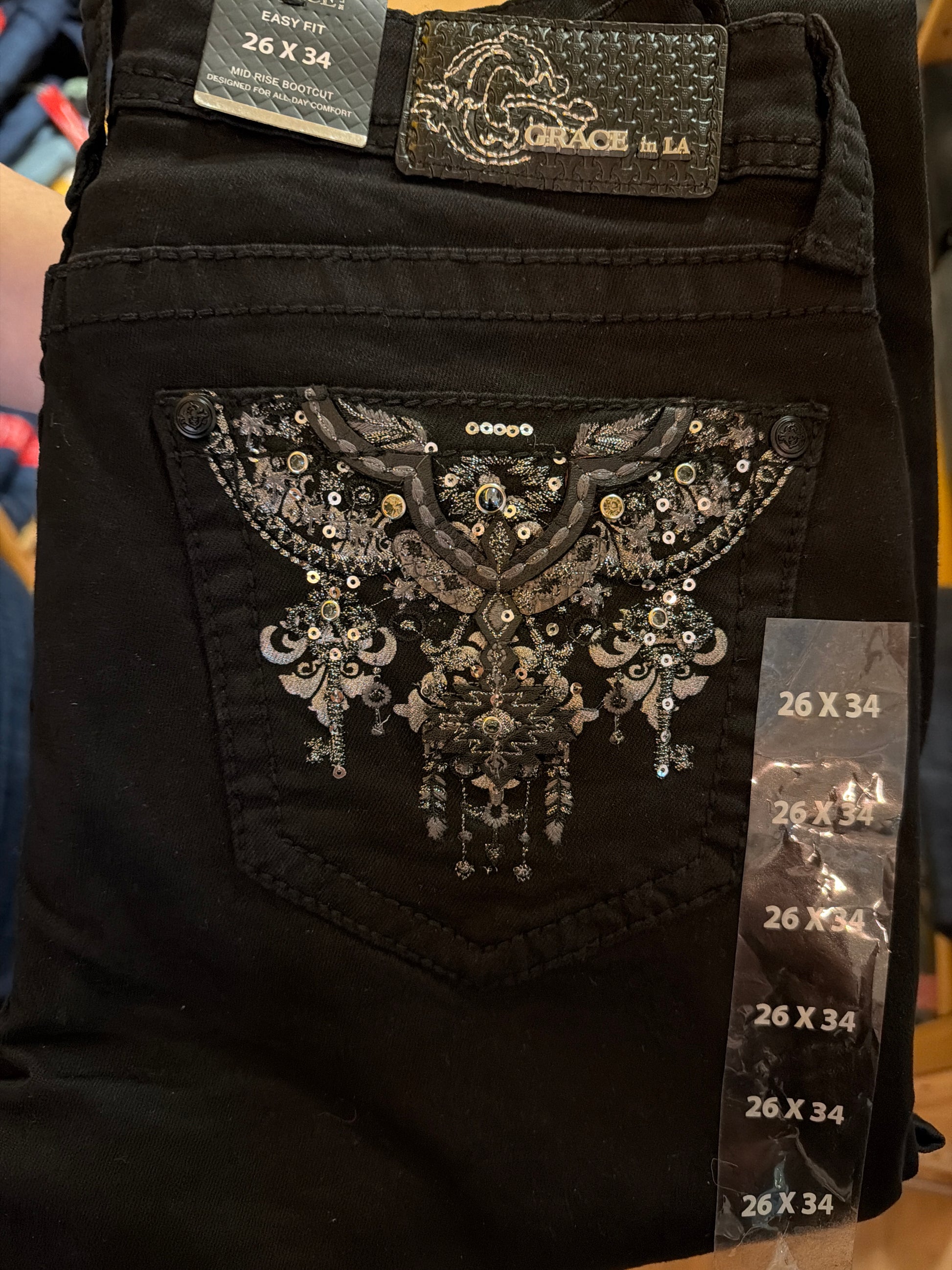 Vi introduserer Grace In LA-jeans, designet for den moderne vestlige kvinnen som verdsetter både komfort og stil. Disse jeansene har de karakteristiske Mountain View-lommene, som gir et snev av vestlig stil til det klassiske bootssnittet. Den mørkeblå fargen og det elastiske materialet gir en enkel passform, slik at du kan bevege deg fritt og trygt. Enten du rir på hest eller utfører ærend, vil disse jeansene holde deg komfortabel og moteriktig hele dagen lang.