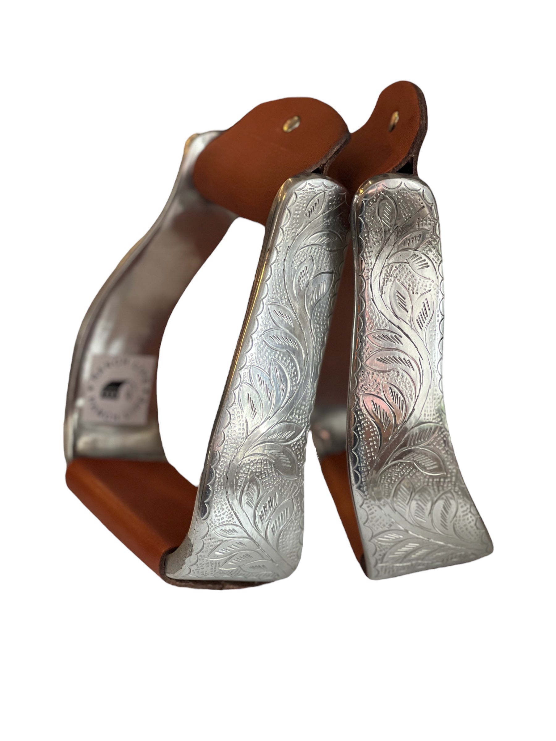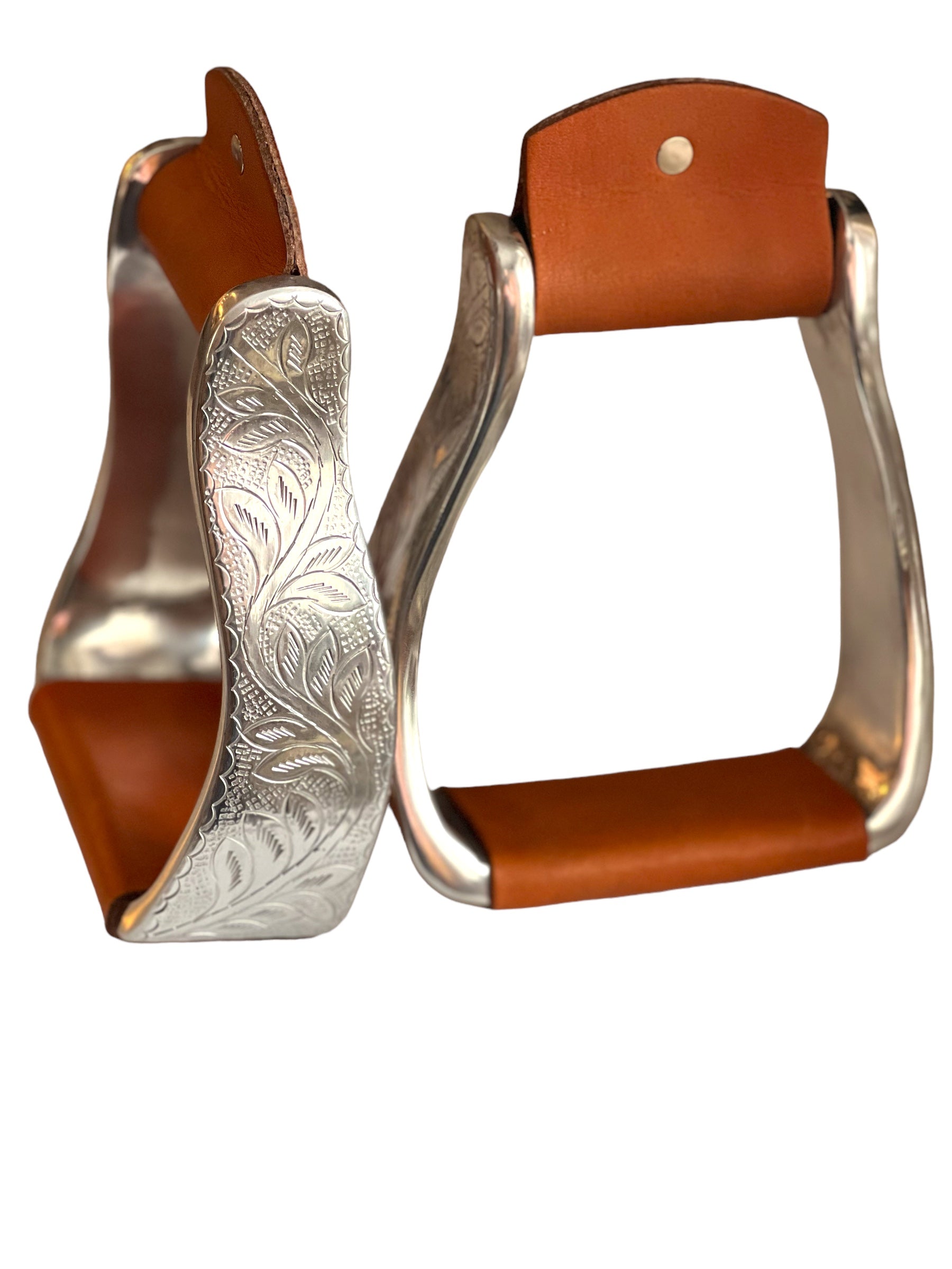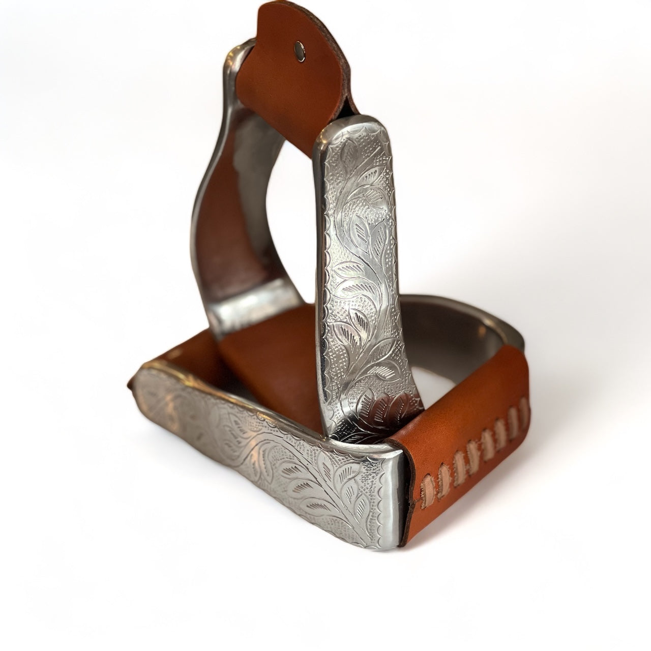 Klassiske stigbøyler for enhver anledning. Enten du er turrytter eller konkurranserytter. Disse har blomsterdesign med lærdetaljer.