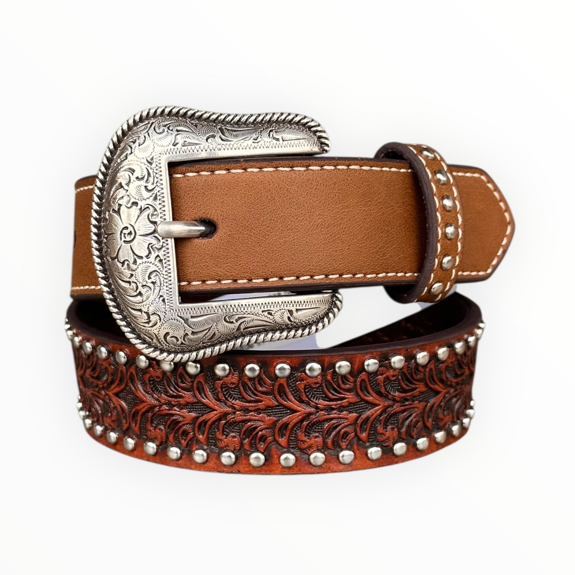 - Spenne i sølvfarget metall med western-gravering