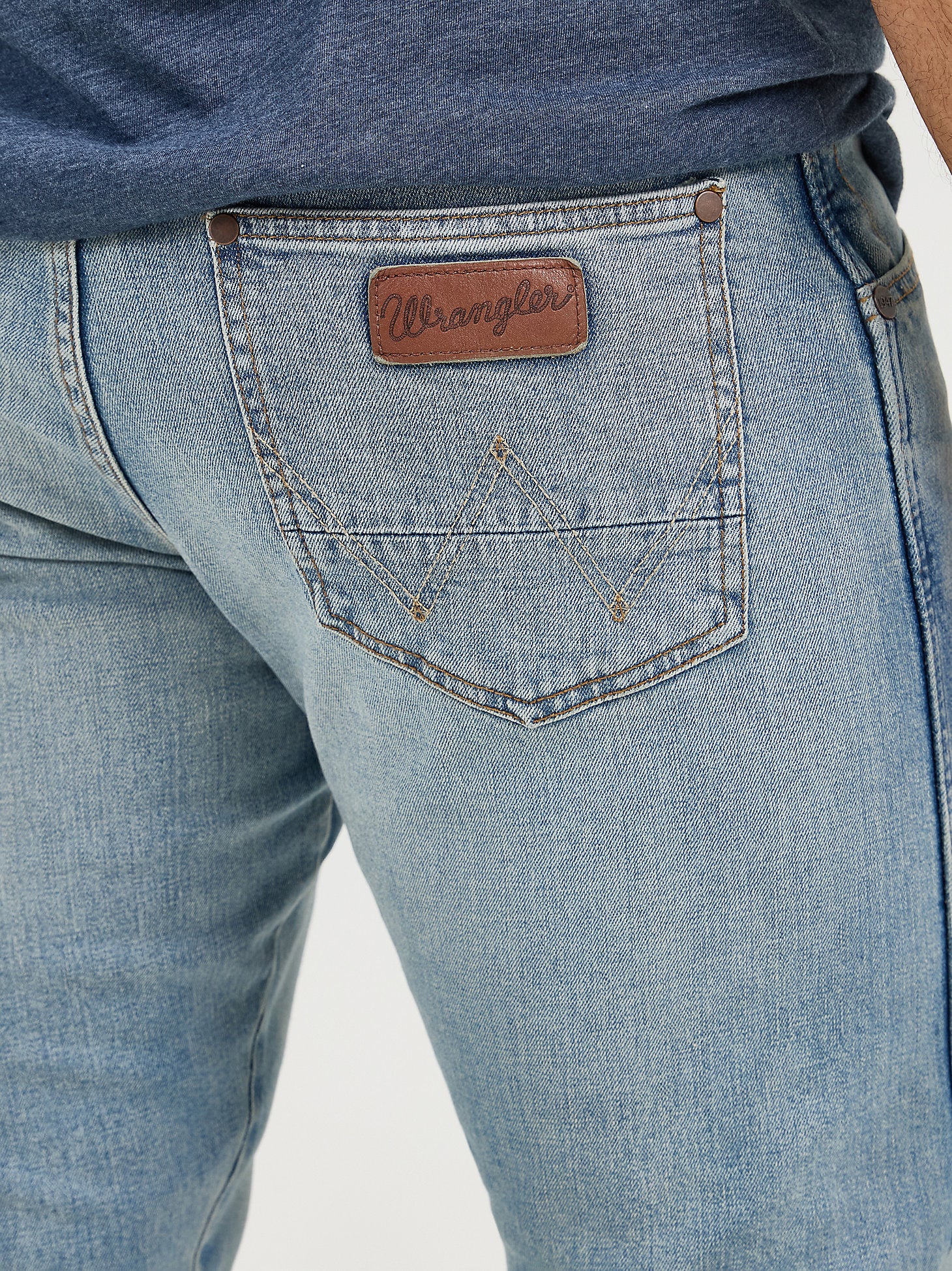 Inspirert av cowboyen sin vestlige arv, kombinerer disse Wrangler® Retro®-jeansene de mest ikoniske egenskaper med moderne passform og vask. Denne oppdaterte klassikeren har den samme slitte skinnlappen til Wrangler med taulogoen, 'W'-søm på baklommene og fem-lommers styling. Disse slanke bootcut-jeansene for menn har en strømlinjeformet silhuett gjennom setet, låret og kneet, men benet utvides fra kneet og nedover, noe som er gode nyheter for støvler.